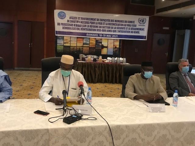 Du 18 au 19 mai derniers à Bamako, s’est tenu un important atelier de renforcement des capacités sur la réforme du secteur de la sécurité et le désarmement, démobilisation et réintégration (RSS-DDR), ainsi que l’Intégration du Genre dans ces domaines au Mali. Destiné aux femmes et hommes membres du Comité de Suivi de l’Accord pour la paix et la réconciliation au Mali (CSA) et de ses sous-comités, ainsi qu’aux représentantes des organisations de la société civile, il a mobilisé une cinquantaine de participant(e)s. Organisé par la section RSS-DDR, l’Unité genre et l'Unité Médiation de la MINUSMA, il répond à l’obligation mandataire faite à la Mission des Nations Unies d’inclure la dimension genre dans l’ensemble de ses actions.